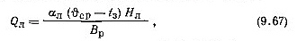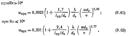 Значения остальных величин указаны выше. Приведенный конвективный теплообмен с воздушной стороны, отнесенный к полной внутренней поверхности труб при продольных ребрах внутри них, определяется по формулам