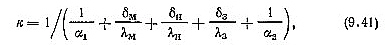 где ai и а2 - коэффициенты теплоотдачи от греющей среды к стенке и от стенки к нагреваемой среде, Вт/(м2*К); δм и λм - толщина и теплопроводность металлической стенки трубы, М и Вт/(м*К); δз и λз - толщина и теплопроводность слоя загрязнений на наружной поверхности трубы, м и Вт/(м*К); δн и λн - толщина и теплопроводность слоя накипи на внутренней поверхности трубы, м и Вт/(м*К).