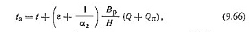 где Q - тепловосприятие данной поверхности нагрева, кДж/кг, определяемое из уравнения баланса по предварительно принятой конечной температуре одной из сред; Qn - теплота, воспринятая поверхностью излучением из топки или из объема перед ней, кДж/кг; t - средняя температура среды, °С; Н - площадь поверхности нагрева, м2; е - коэффициент загрязнения, м2*К/Вт; а2 - коэффициент теплоотдачи от стенки к пару, Вт/(м2*К).